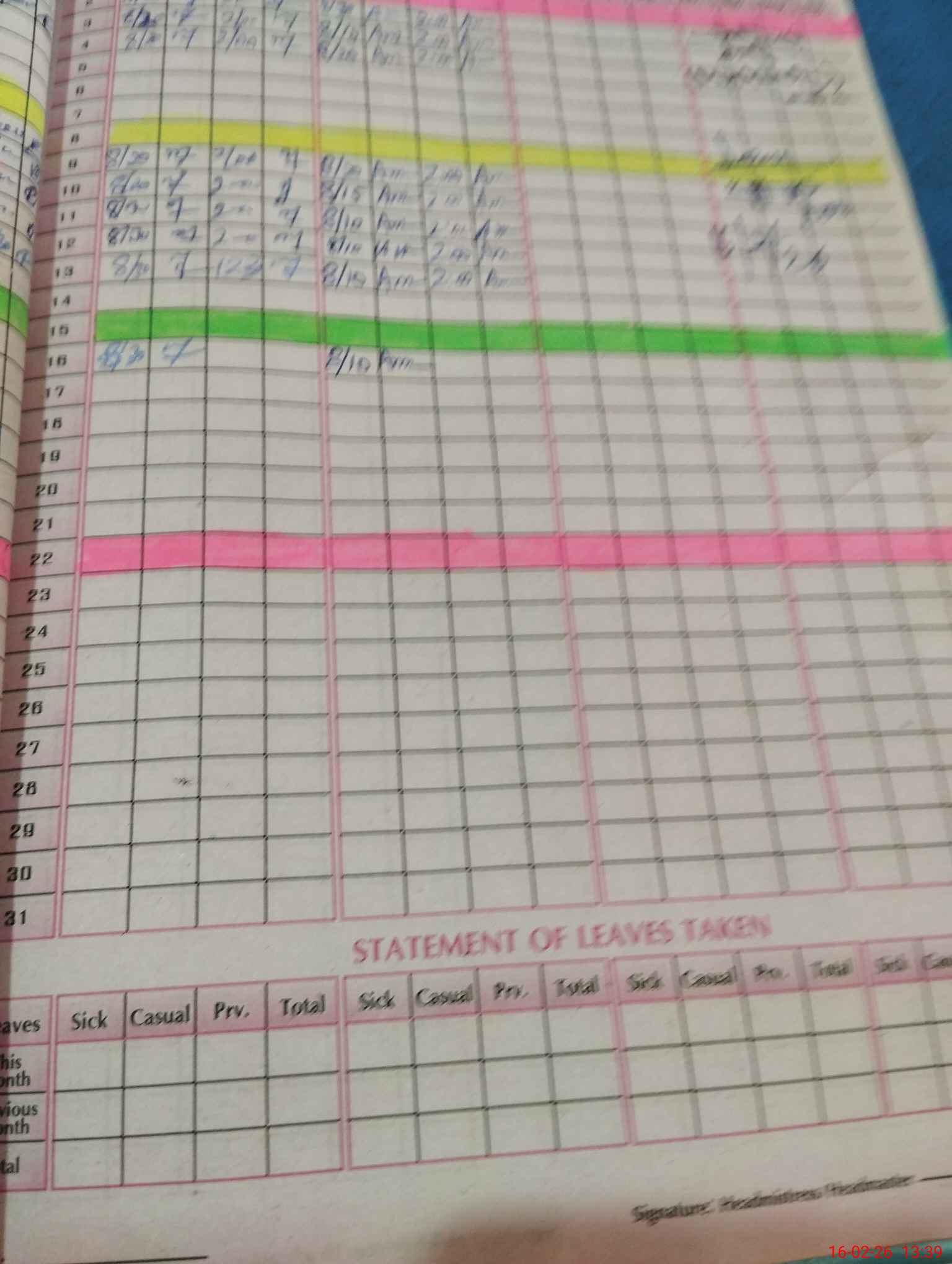 | CNIC | Full Name | Designation | R/C | Absence During Last Calender Month |