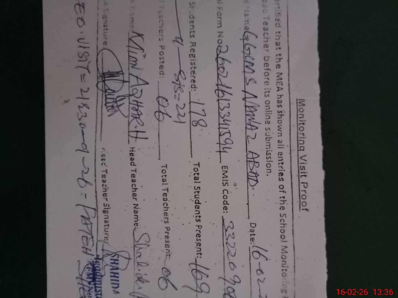 | Certified that this School was Inspected by the Undersigned MEA/DMO Today and the Information Stated Above is as Per Record. | |||||