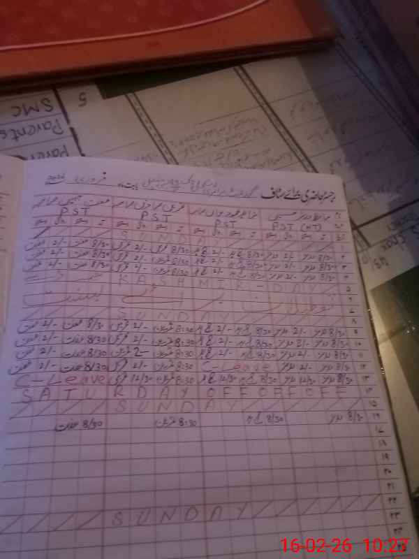 | CNIC | Full Name | Designation | R/C | Absence During Last Calender Month |