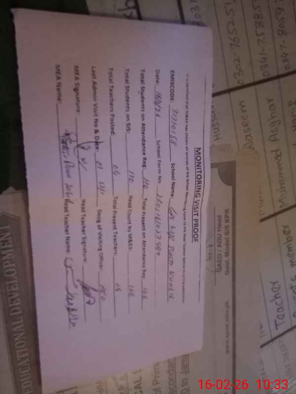 | Certified that this School was Inspected by the Undersigned MEA/DMO Today and the Information Stated Above is as Per Record. | |||||
