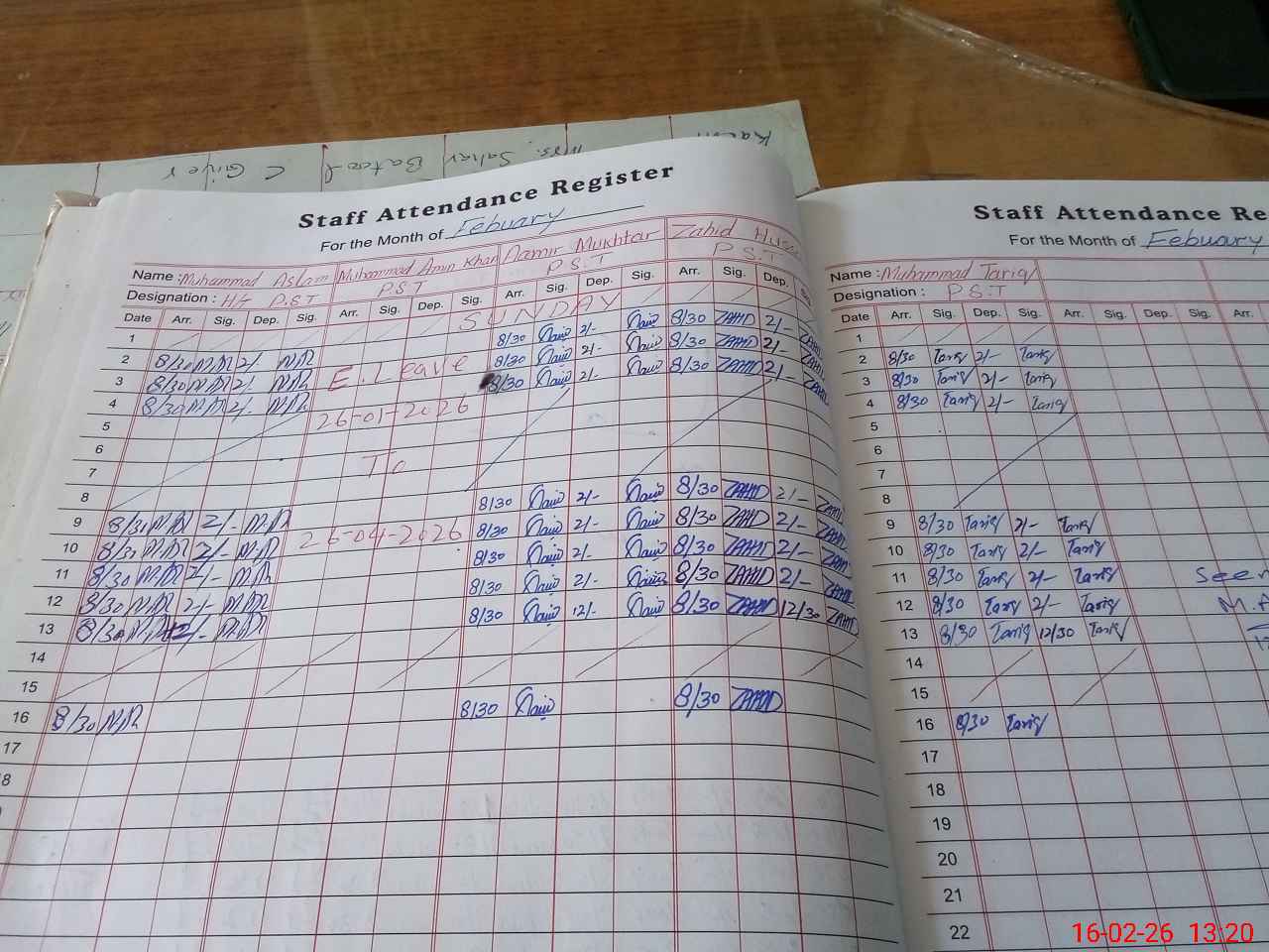 | CNIC | Full Name | Designation | R/C | Absence During Last Calender Month |