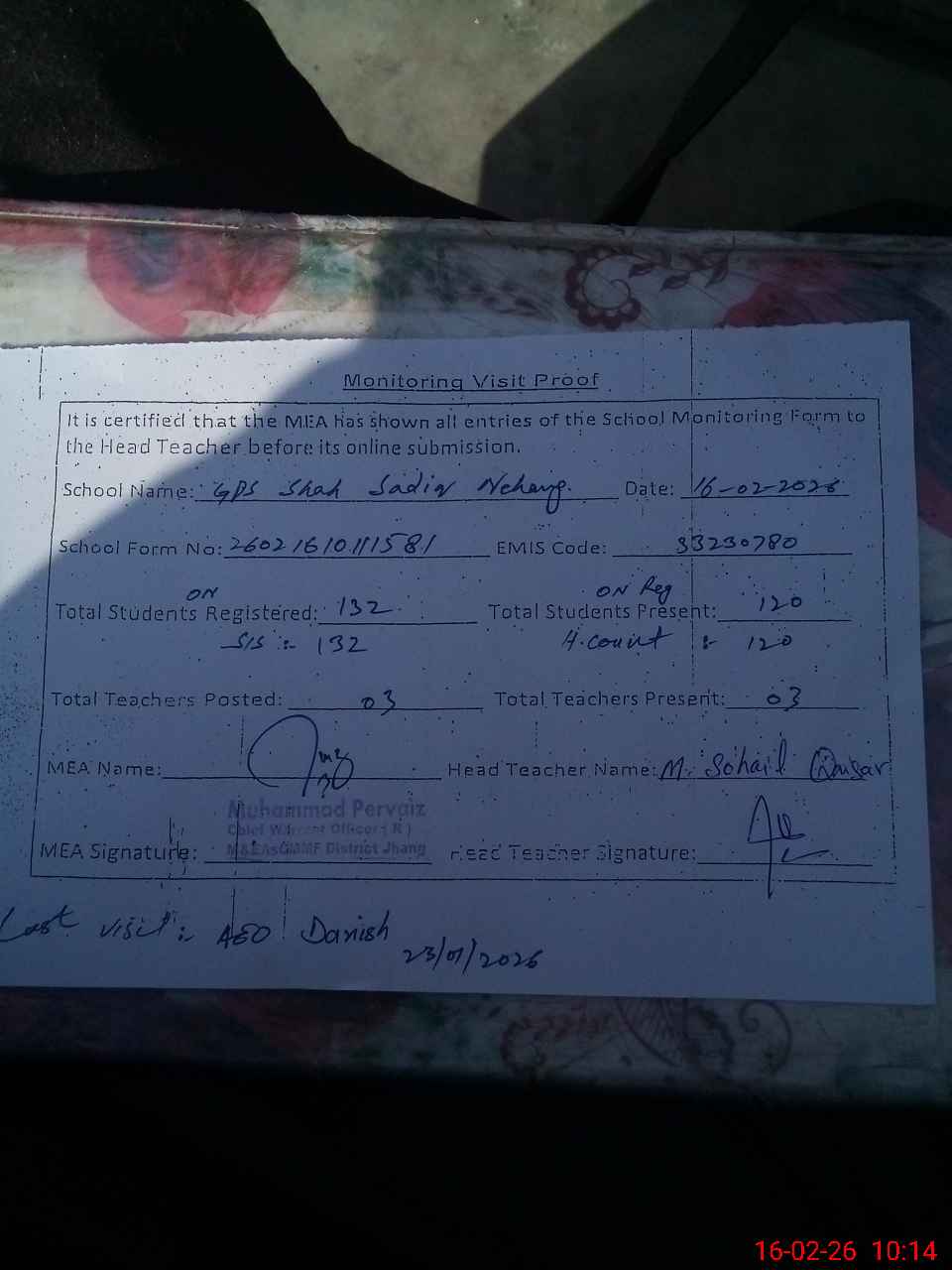 | EMIS Code: 33230780 | Name of School: GPS SHAH SADIQ NIHUNG | |||