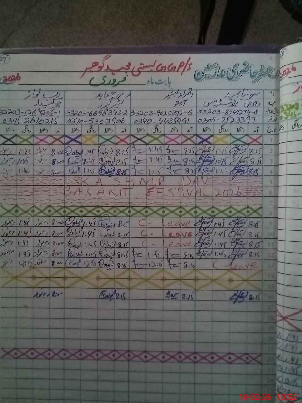| Leave | Duty | Absent | Maternity | Medical | Ex- Pak |
