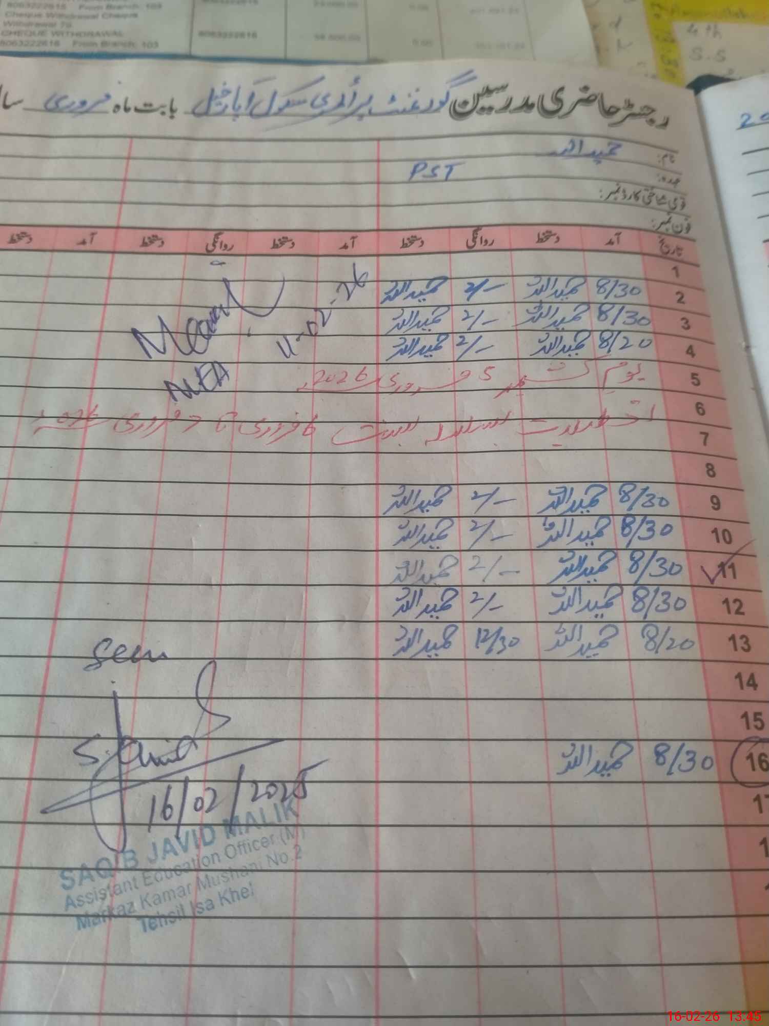 | Name: AM**** UL**** KH**** Designation: (School Headmaster's/Headmistress's) PST/PTC/JV Phone/Cell Number: 03**** |