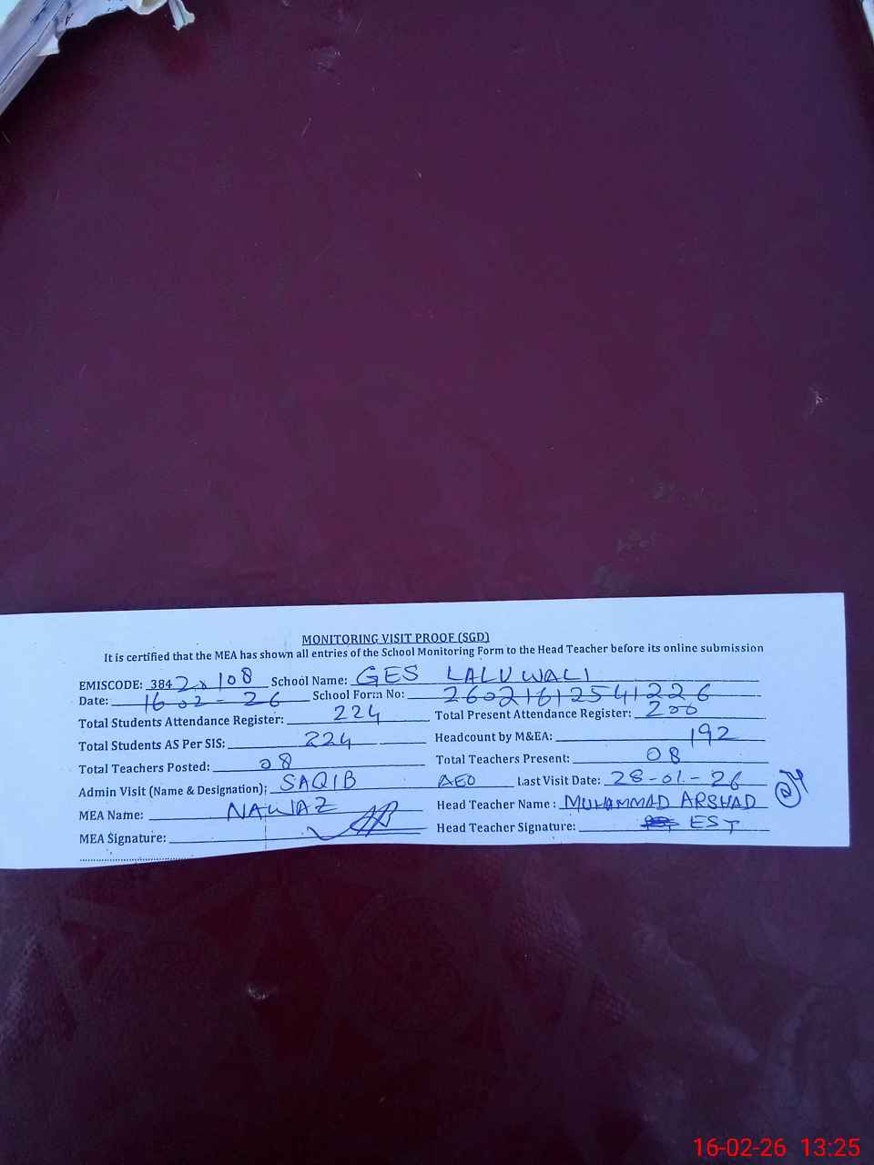 | Certified that this School was Inspected by the Undersigned MEA/DMO Today and the Information Stated Above is as Per Record. | |||||