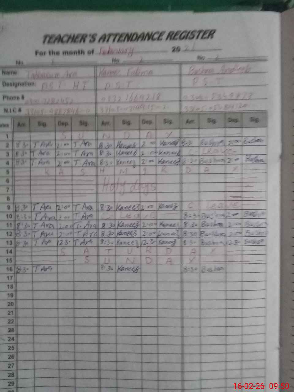 | Name: Ta**** Ar**** Designation: (School Headmaster's/Headmistress's) PST Phone/Cell Number: 03**** |