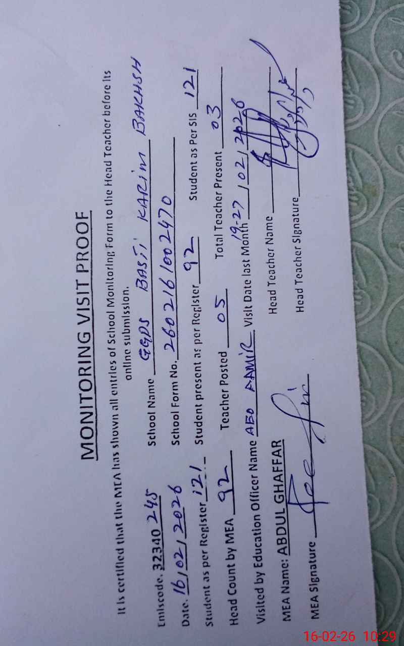 | EMIS Code: 32340245 | Name of School: GGPS BASTI KARIM BAKHSH | |||