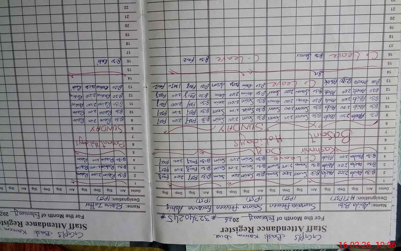 | CNIC | Full Name | Designation | R/C | Absence During Last Calender Month |