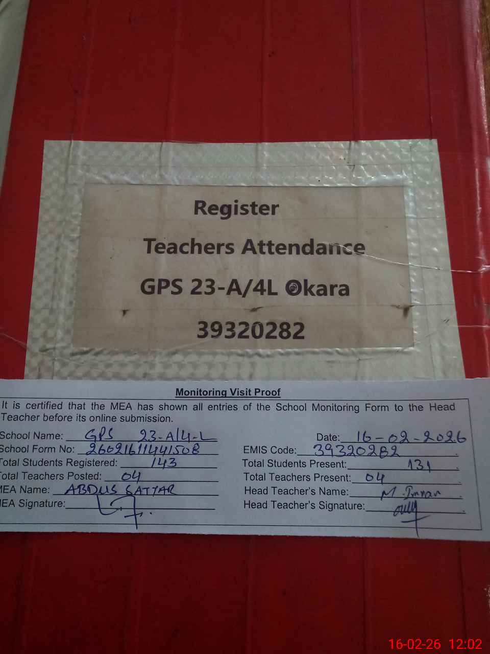 | EMIS Code: 39320282 | Name of School: GPS 23-A/4.L | |||