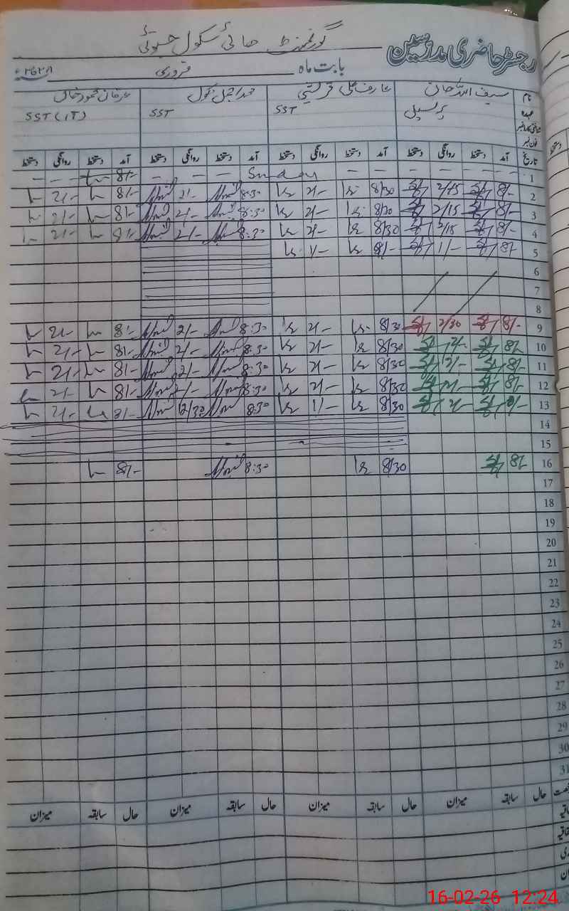 | 32**** | Mu**** Wa**** | NAIB QASID | Regular | 0 | 0 | 31 | 0 | 0 | 0 | 0 | 0 | 0 | Absent (Un-Authorized) |