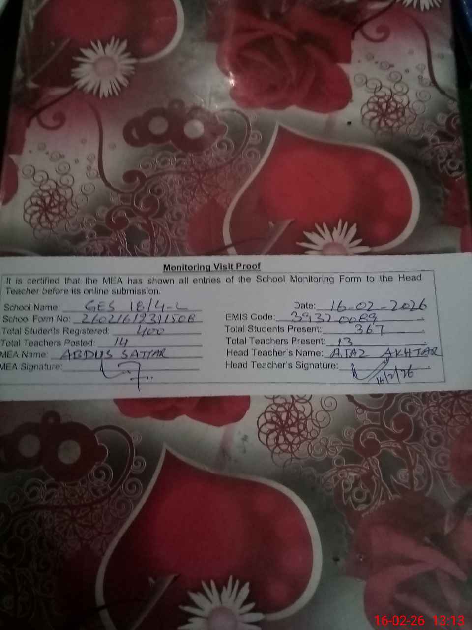 | EMIS Code: 39320089 | Name of School: GES 18/4-L | |||