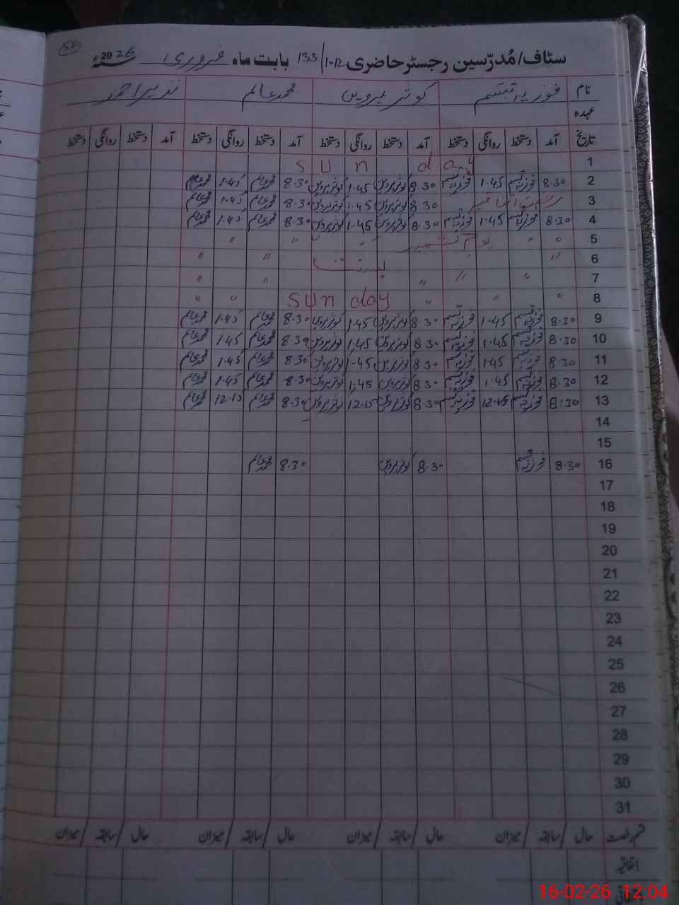| CNIC | Full Name | Designation | R/C | Absence During Last Calender Month |