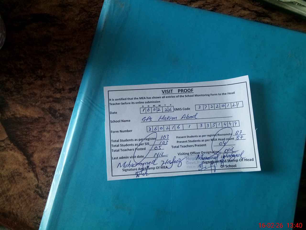 | Certified that this School was Inspected by the Undersigned MEA/DMO Today and the Information Stated Above is as Per Record. | |||||