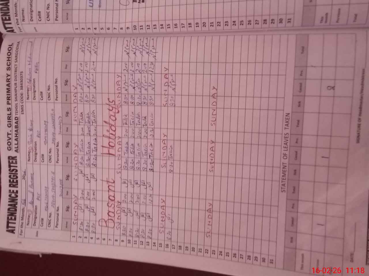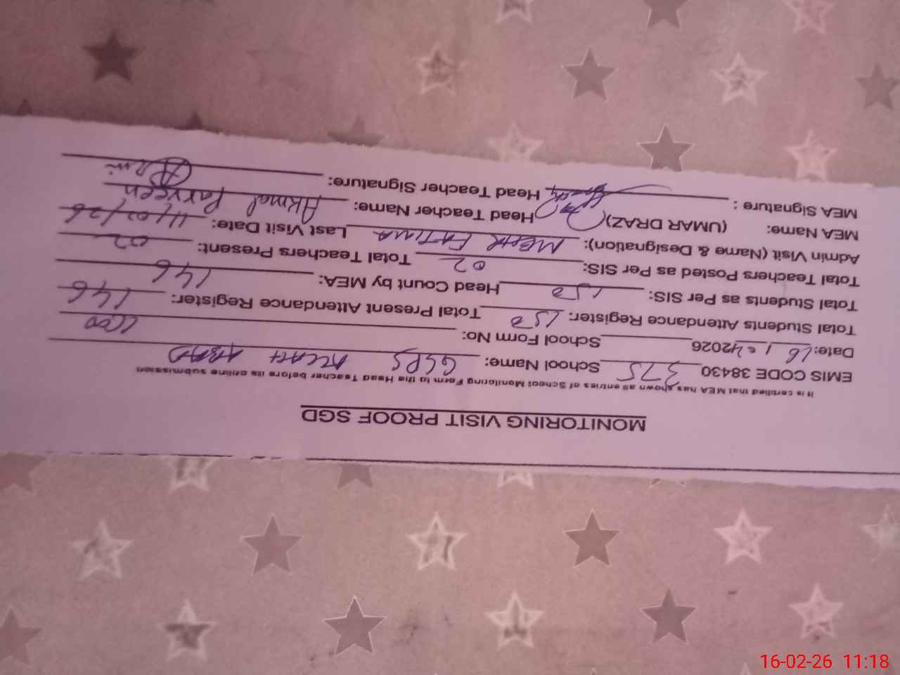 | EMIS Code: 38430375 | Name of School: GGPS ALLAH ABAD | |||