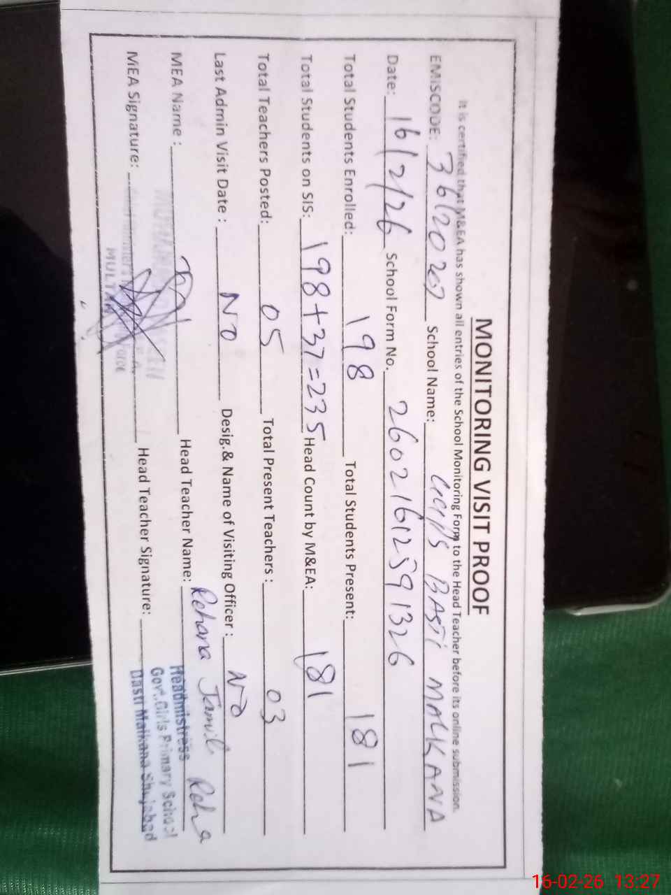 | Certified that this School was Inspected by the Undersigned MEA/DMO Today and the Information Stated Above is as Per Record. | |||||