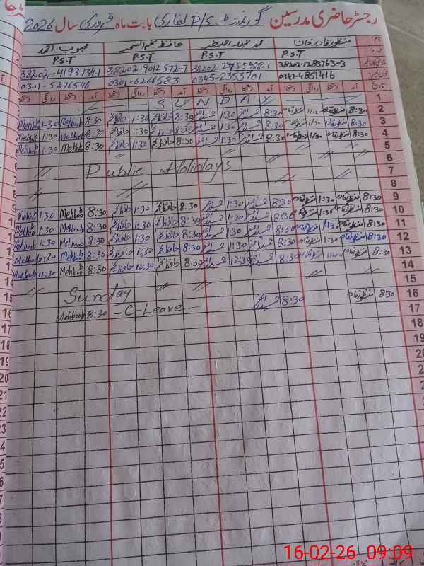 | Name: MA**** QA**** Designation: (School Headmaster's/Headmistress's) PST Phone/Cell Number: 03**** |