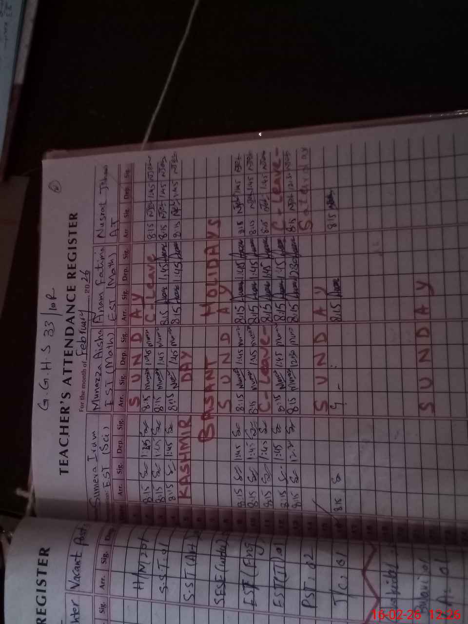 | Remarks (Use Separate Page if Required): NOTE MISS MUNAZZA EST MATH ABSENT WITH OUT LEAVE incharge head miss sumaira iram give wrong statement teacher available but she were not available in school and her attendance coloum blank | |||||