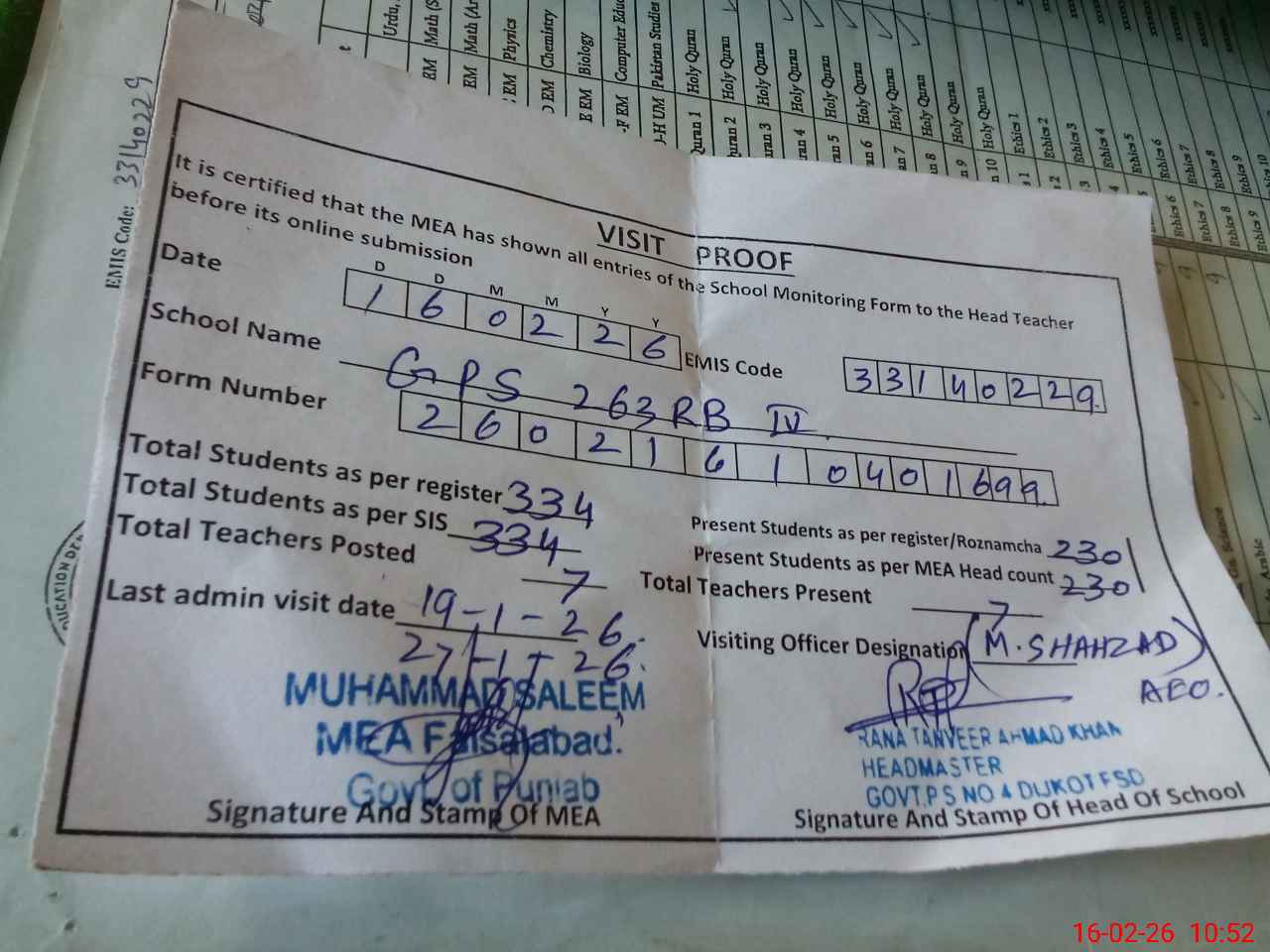 | EMIS Code: 33140229 | Name of School: GPS CHAK 263 RB IV DGJ KOT | |||