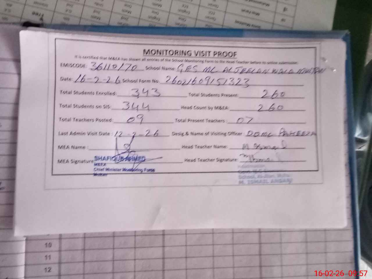 | EMIS Code: 36110170 | Name of School: GES MC AL-JEELLAN WALA MULTAN | |||