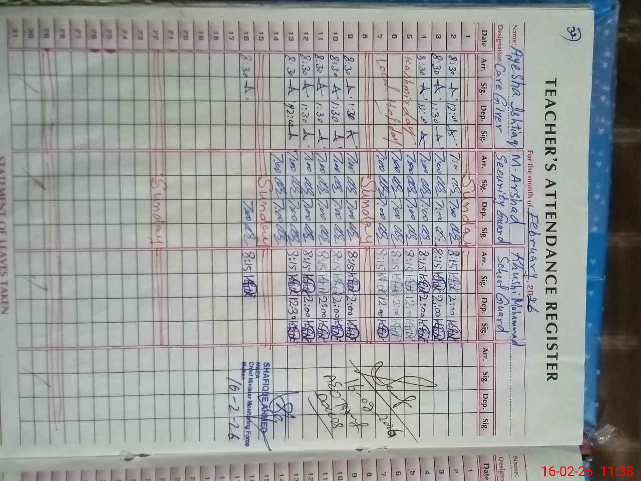 | Monitoring Date: 16-02-2026 | Start Time: 16-02-2026 11:35 AM | End Time: 16-02-2026 12:03 PM | Name of MEA: SH**** AH**** | |