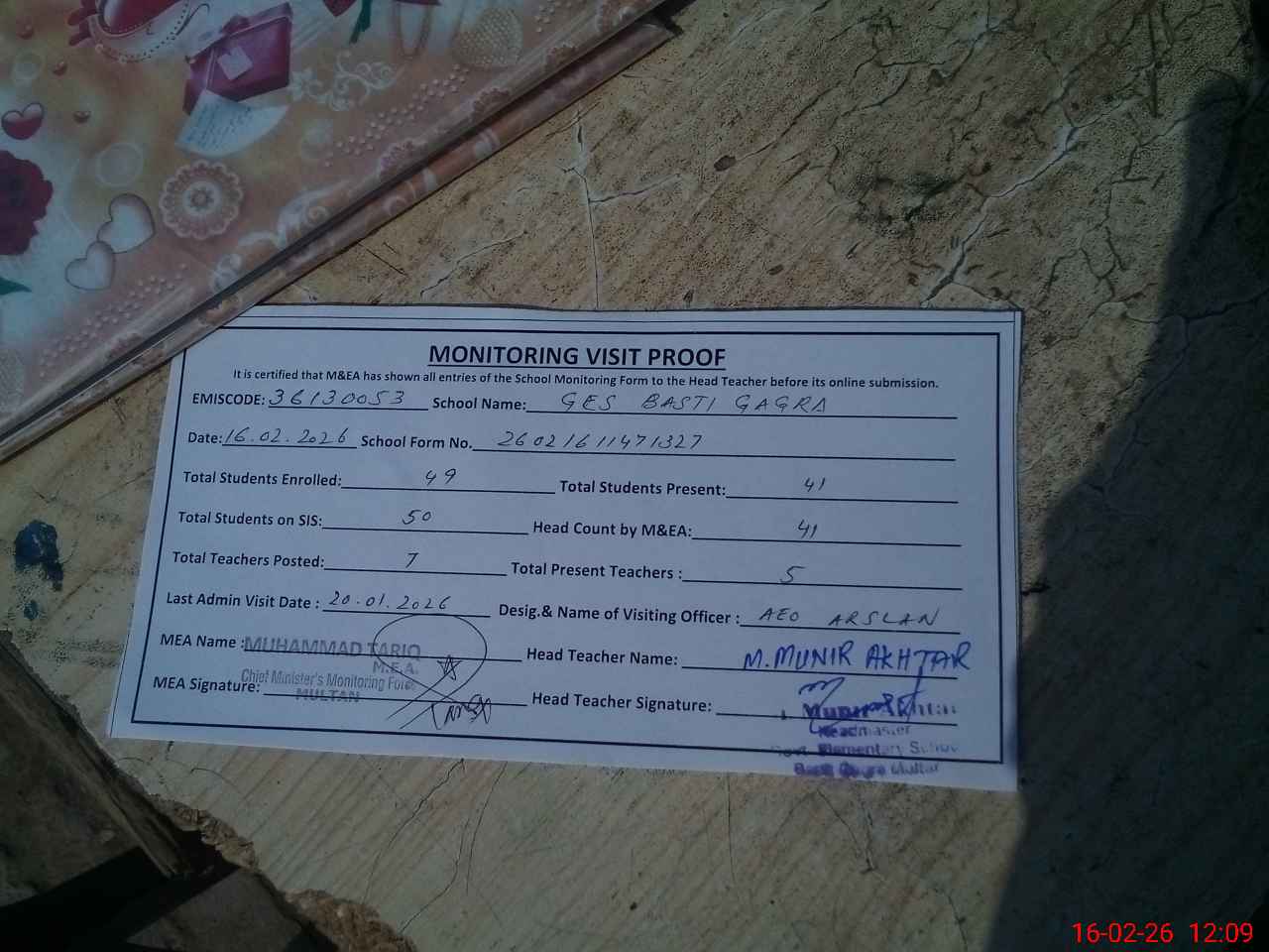 | EMIS Code: 36130053 | Name of School: GES BASTI GAGRA P/O JHOKE VAINCE | |||