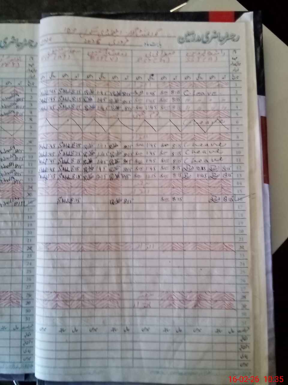 | CNIC | Full Name | Designation | R/C | Absence During Last Calender Month |