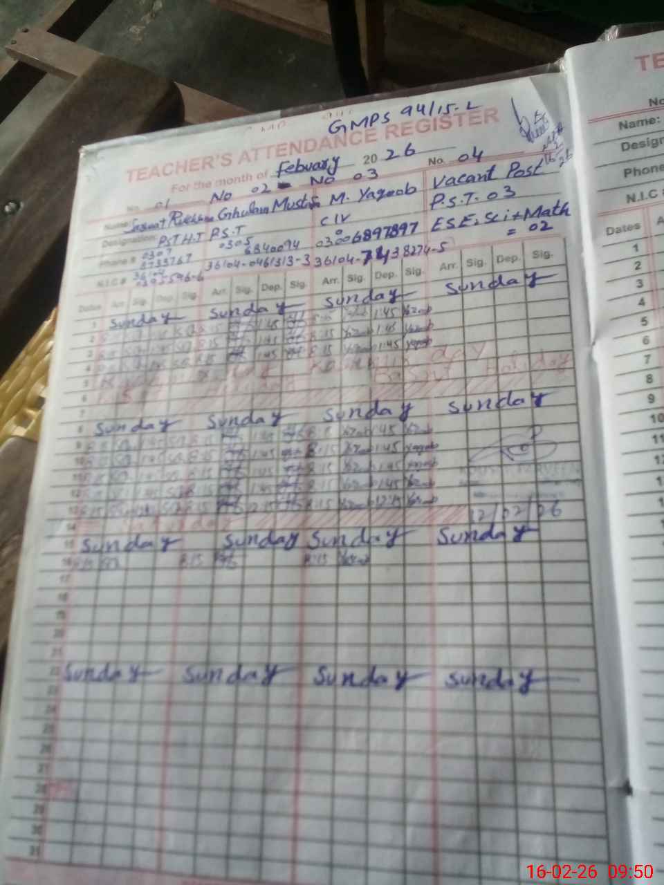 | Name: SA**** RU**** Designation: (School Headmaster's/Headmistress's) PST Phone/Cell Number: 03**** |