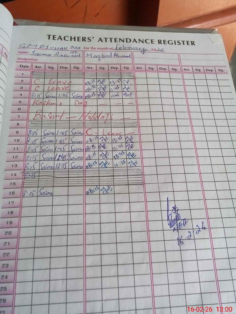 | Monitoring Date: 16-02-2026 | Start Time: 16-02-2026 12:23 PM | End Time: 16-02-2026 01:04 PM | Name of MEA: MU**** SH**** | |