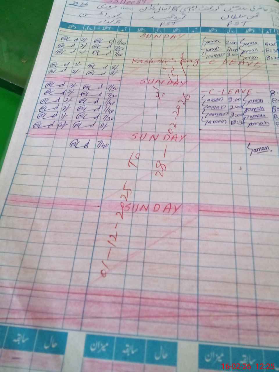 | CNIC | Full Name | Designation | R/C | Absence During Last Calender Month |