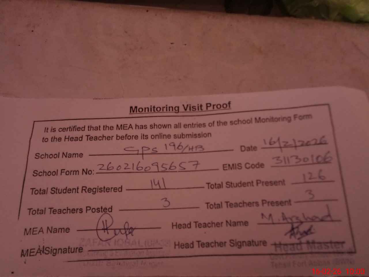 | EMIS Code: 31130106 | Name of School: GPS CHAK 196/HB | |||
