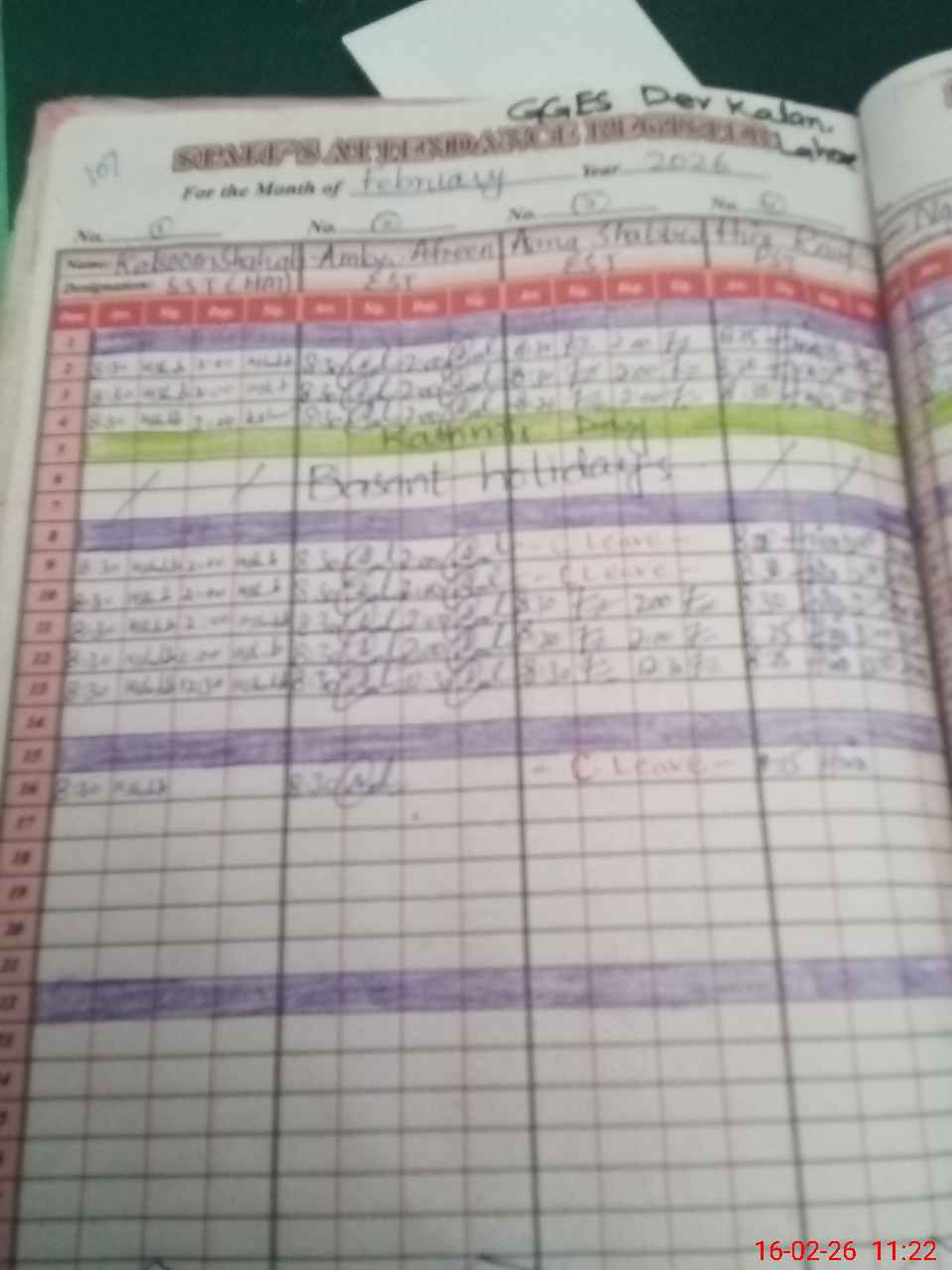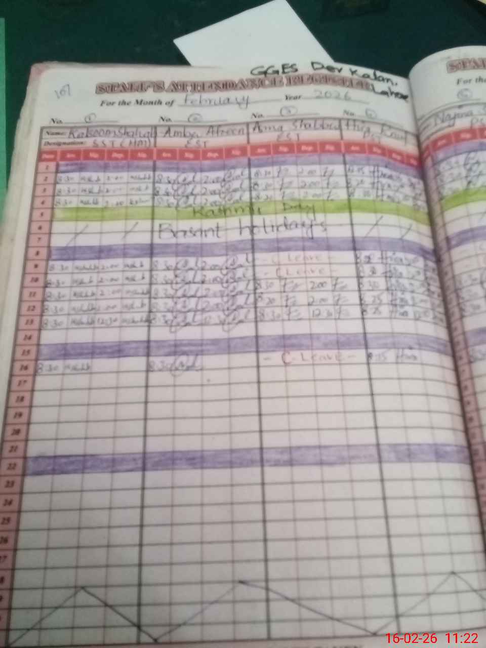 | CNIC | Full Name | Designation | R/C | Absence During Last Calender Month |