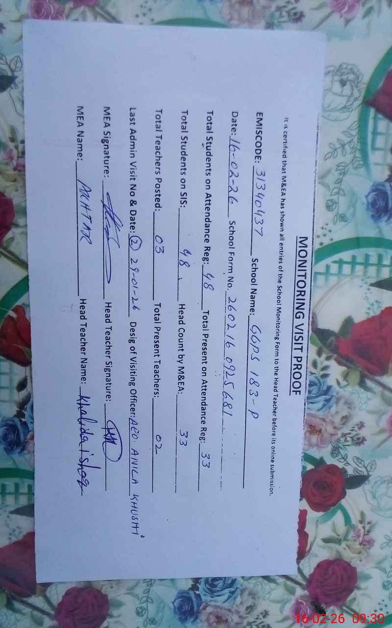 | EMIS Code: 31340437 | Name of School: GGPS 183/P | |||