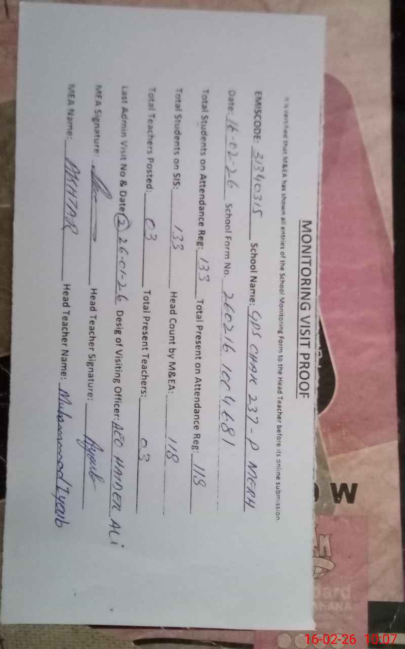 | EMIS Code: 31340315 | Name of School: GPS CHAK NO 237/P MERH | |||