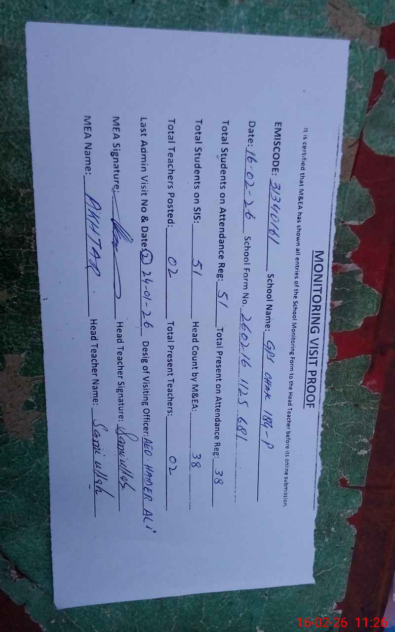 | EMIS Code: 31340161 | Name of School: GPS CHAK NO 184/P | |||