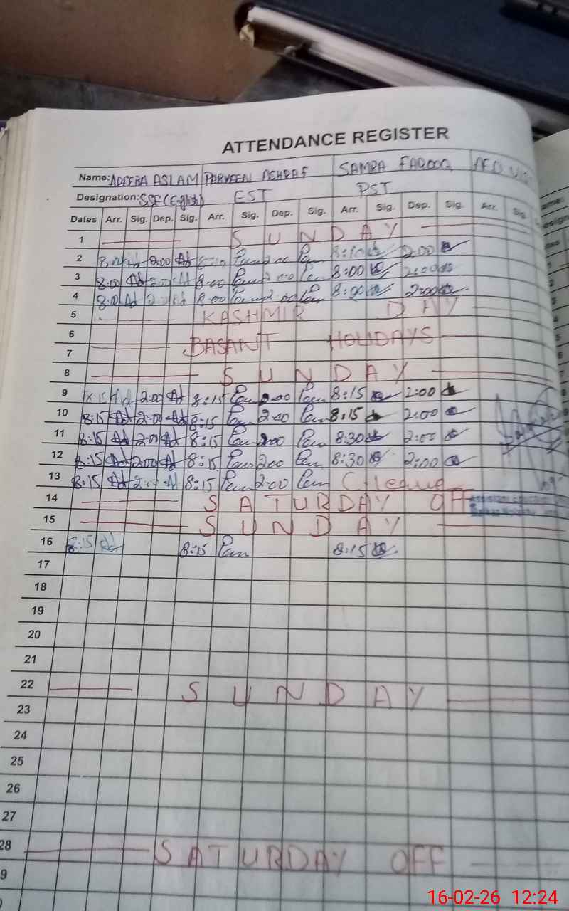 | CNIC | Full Name | Designation | R/C | Absence During Last Calender Month |