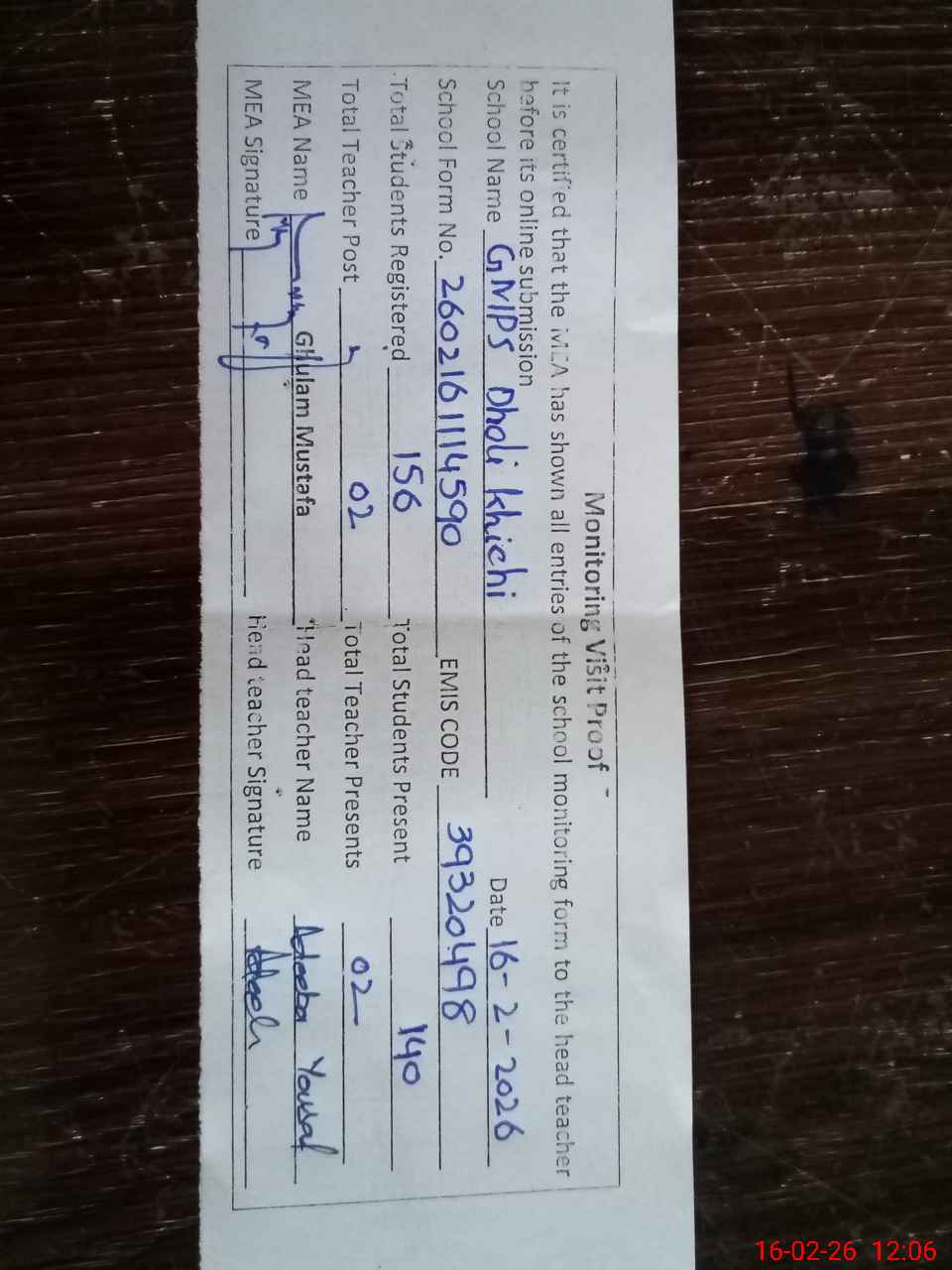 | EMIS Code: 39320498 | Name of School: GMPS DHOLI KHICHI | |||