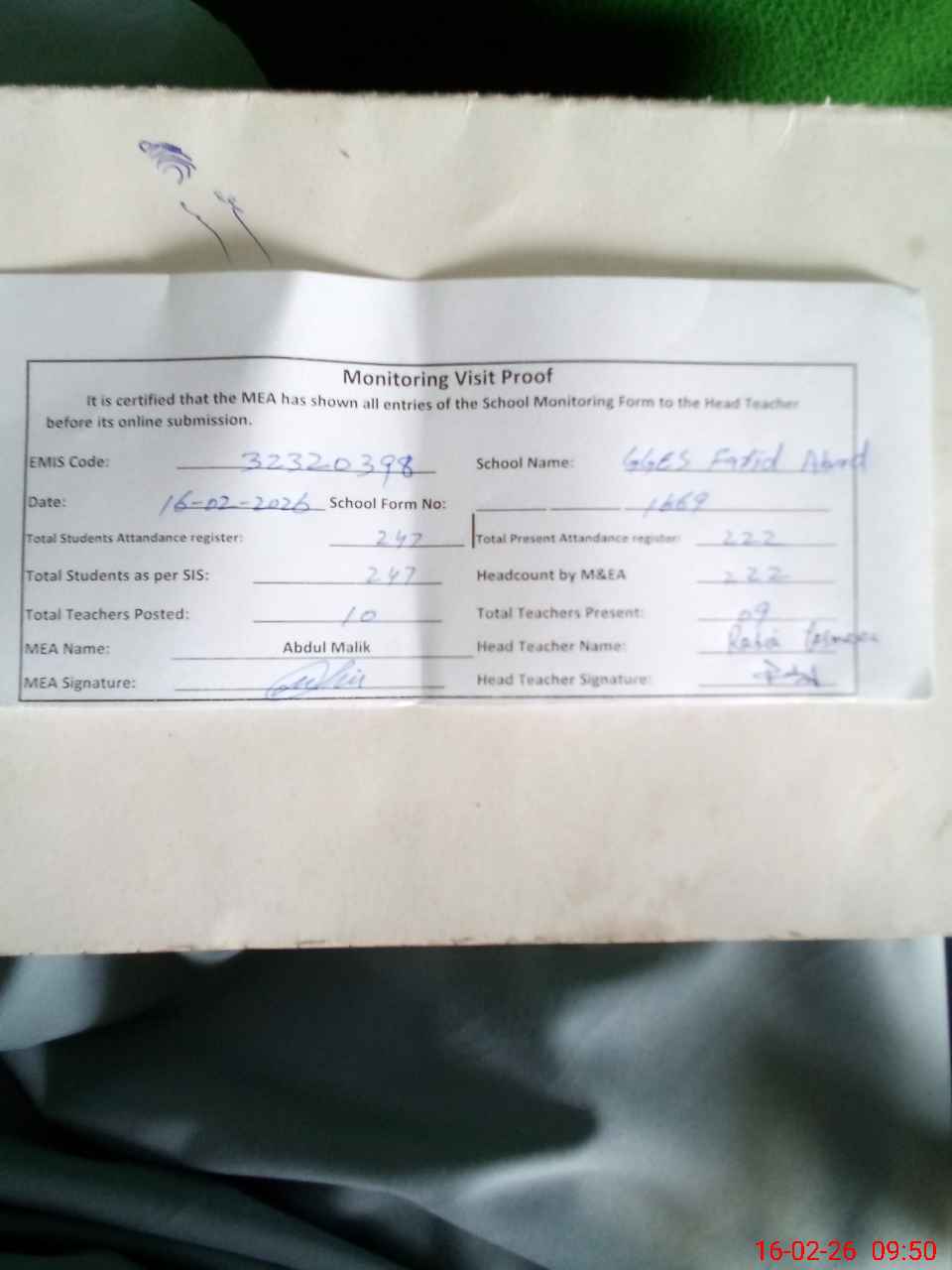 | EMIS Code: 32320398 | Name of School: GGES FARID ABAD | |||
