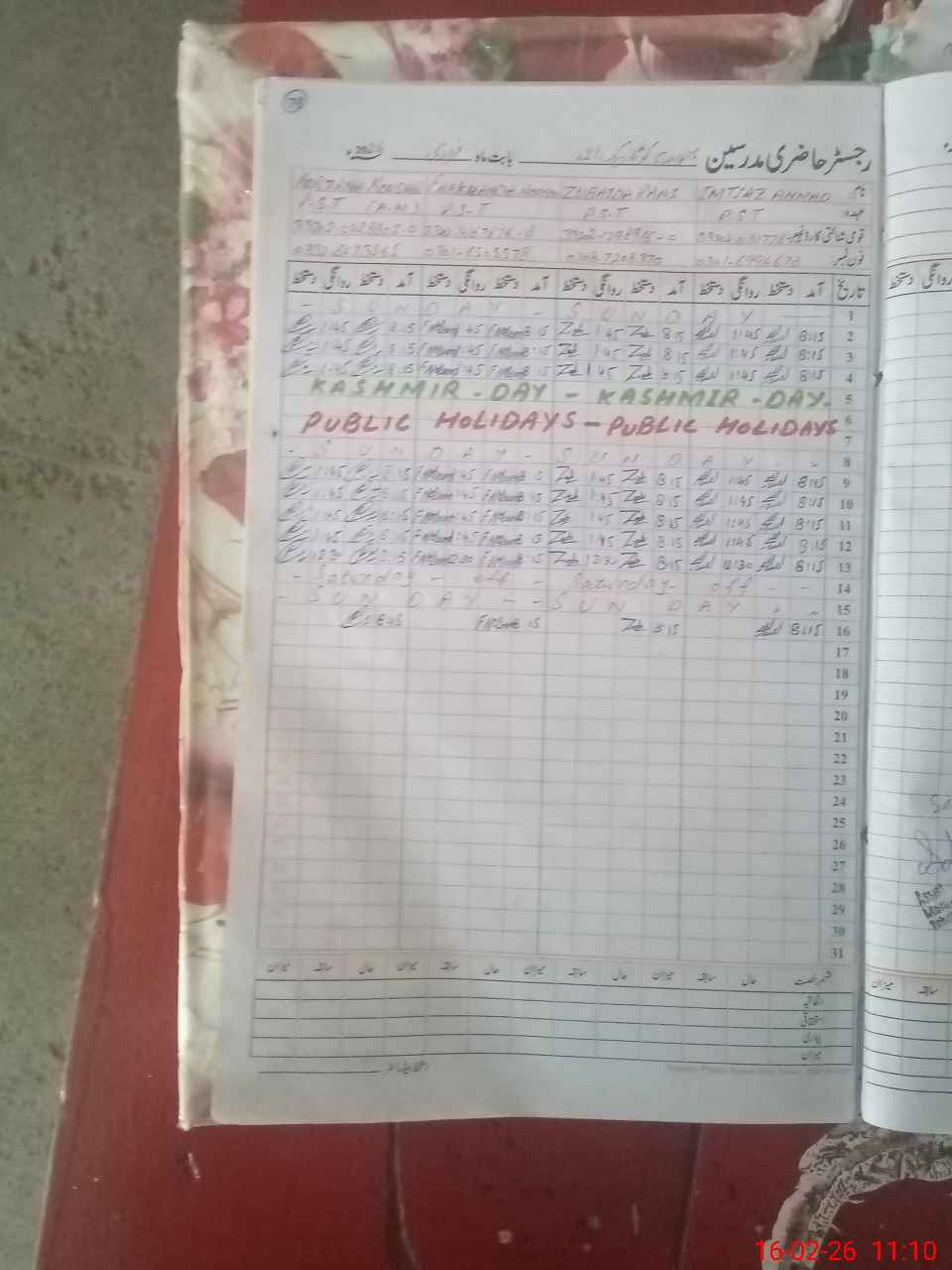 | Name: MU**** MU**** Designation: (School Headmaster's/Headmistress's) PST Phone/Cell Number: 03**** |