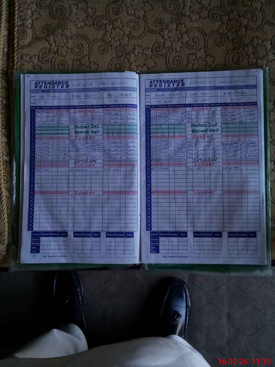 | No. of Students Present - Female | 0 | 20 | 48 | 51 | 49 | 39 | 42 | 312 | ||||||||