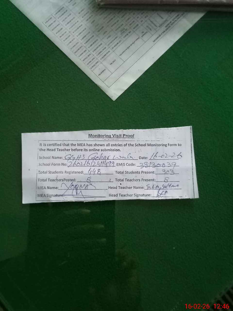 | EMIS Code: 38130039 | Name of School: GGHS GOHER WALA | |||