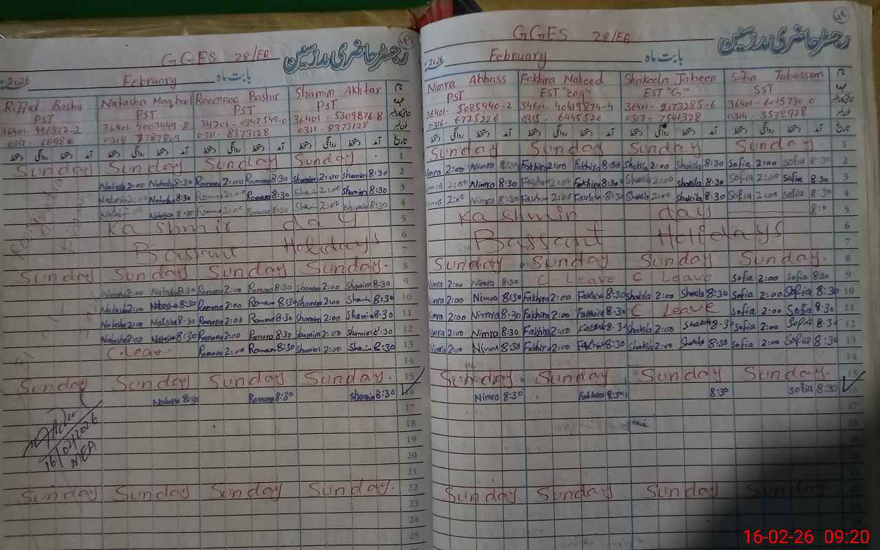 | 36**** | Ni**** Fi**** | EST Science | Regular | 0 | 0 | 0 | 0 | 0 | 0 | 0 | 0 | 0 | Absent (Un-Authorized) |