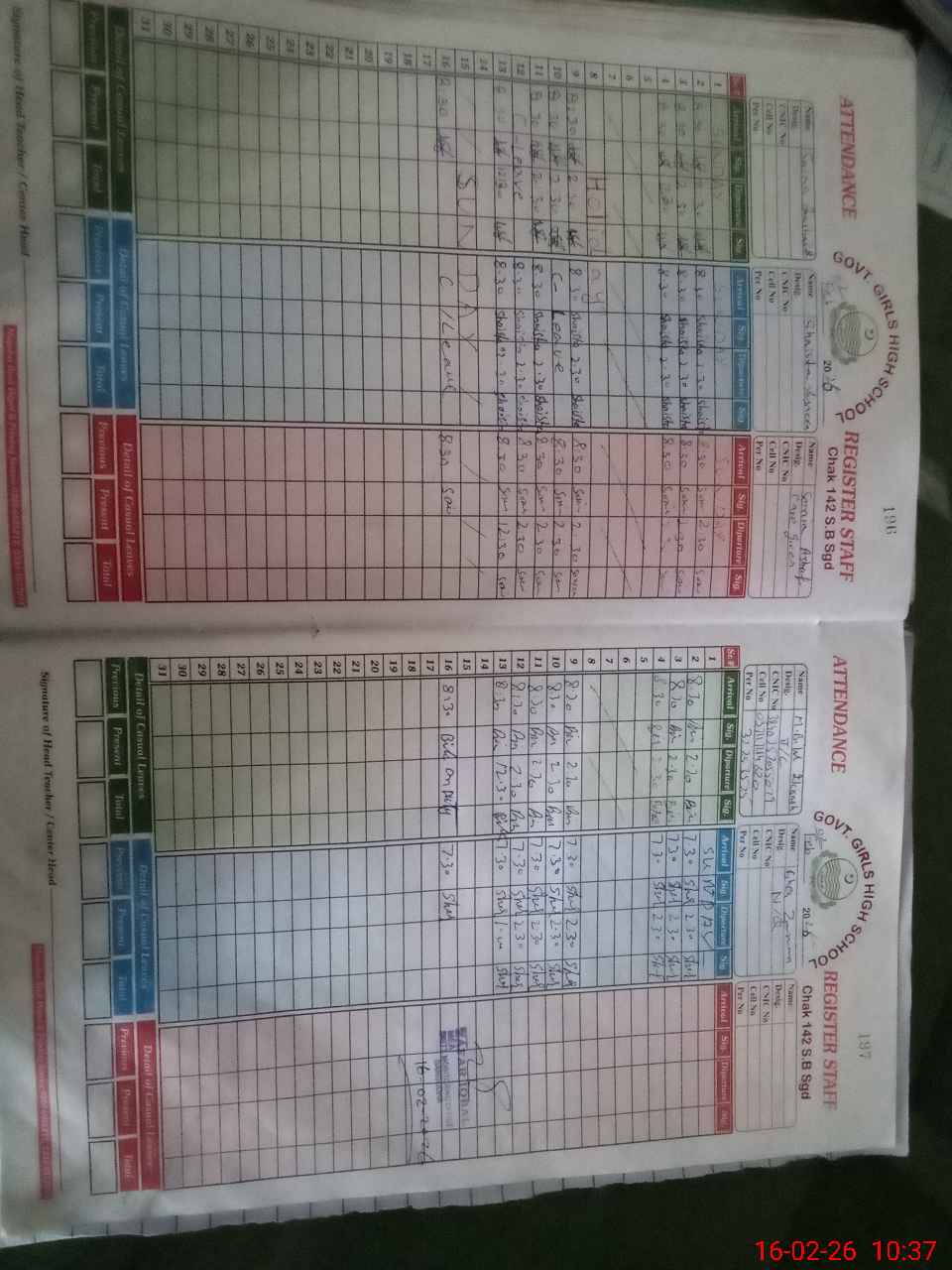 | CNIC | Full Name | Designation | R/C | Absence During Last Calender Month |