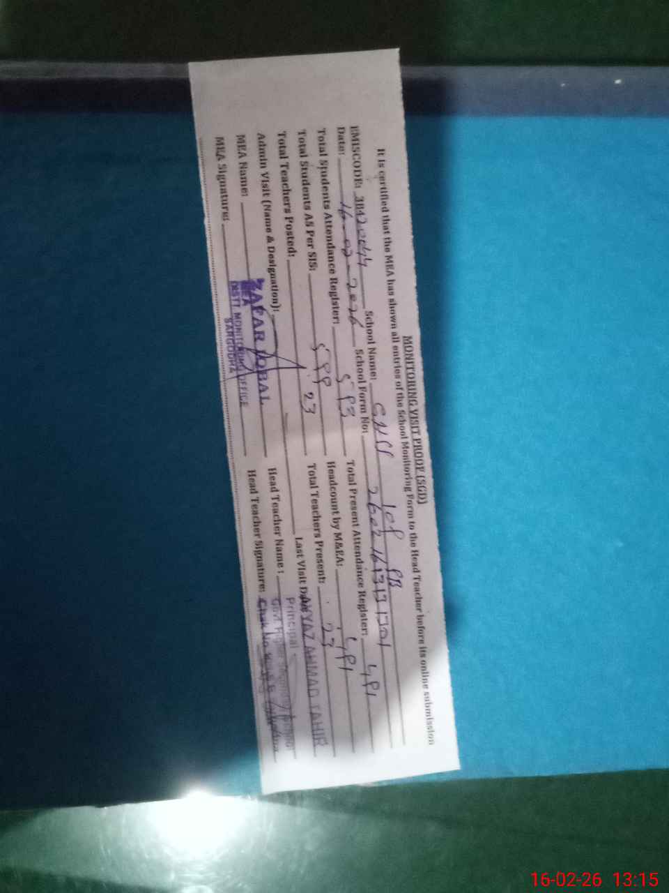 | Certified that this School was Inspected by the Undersigned MEA/DMO Today and the Information Stated Above is as Per Record. | |||||