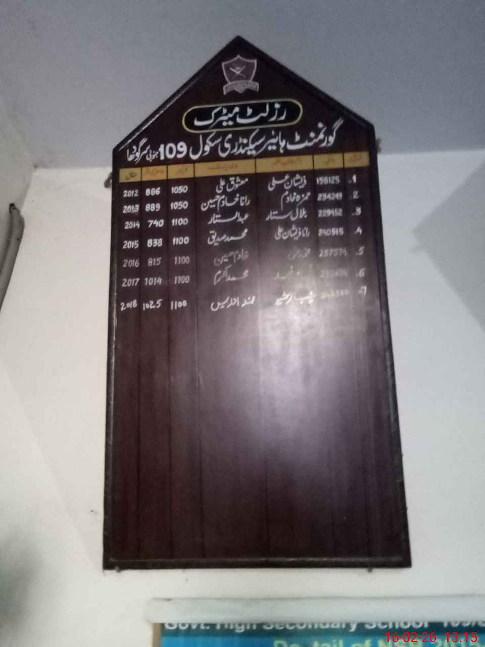 | EMIS Code: 38420044 | Name of School: GHSS CHAK NO.109 SB | |||