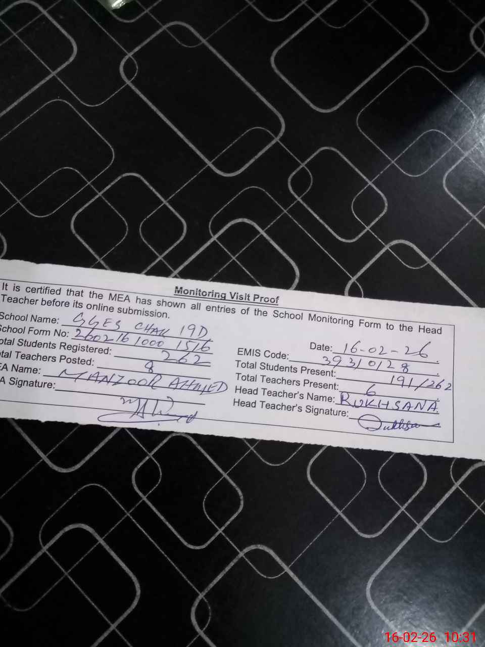 | Certified that this School was Inspected by the Undersigned MEA/DMO Today and the Information Stated Above is as Per Record. | |||||