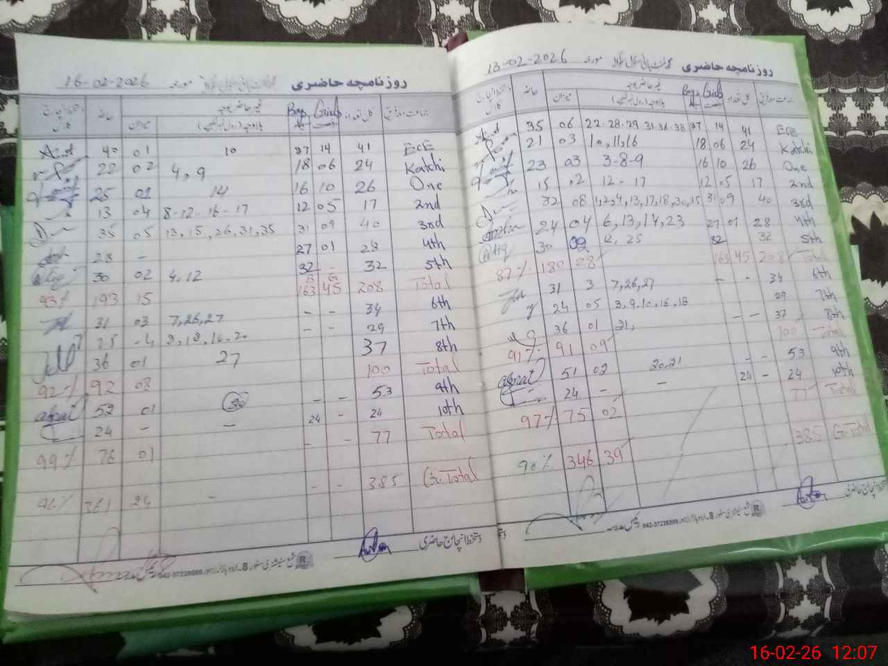 | Total Students Present | 0 | 40 | 25 | 13 | 34 | 28 | 29 | 31 | 25 | 36 | 52 | 24 | 359 | |||