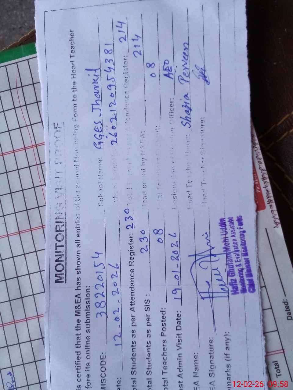 | EMIS Code: 38220154 | Name of School: GGES JHARKIL | |||