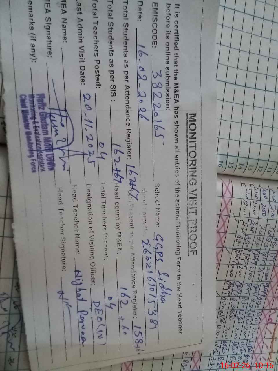 | Certified that this School was Inspected by the Undersigned MEA/DMO Today and the Information Stated Above is as Per Record. | |||||