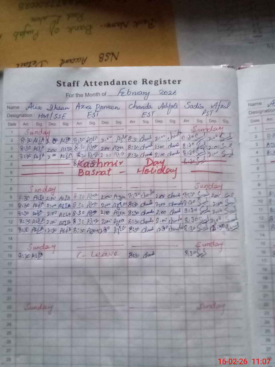 | CNIC | Full Name | Designation | R/C | Absence During Last Calender Month |