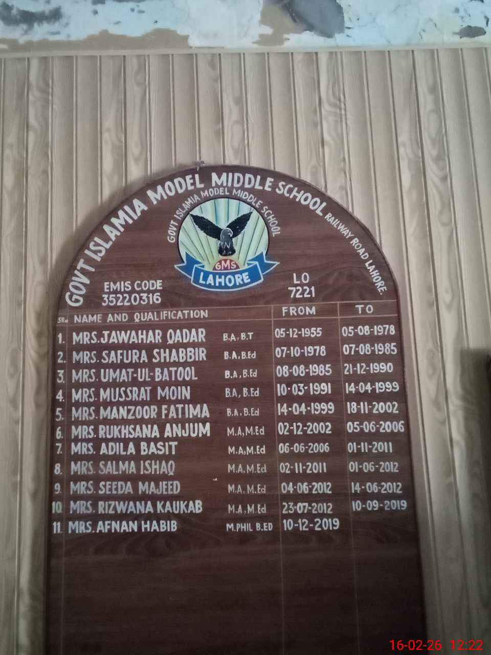| EMIS Code: 35220316 | Name of School: GGES ISLAMIA MODEL MIDDLE SCHOOL, RAILWAY ROAD, LAHORE | |||